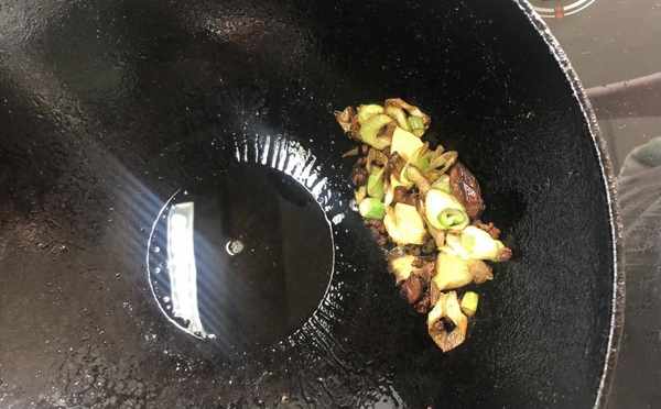 1.选用新鲜面条抖散放入锅水中蒸10分钟。在蒸面条期间,准备葱姜、花椒和八角,起锅热油,下入小料爆出香味。待其炸至焦黄,将小料控油捞出,留油关火。