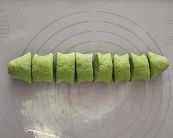 4、发好的面团不能直接用,要想将里边的气体揉出去,让面团的质地变得细腻,接着分成小份。