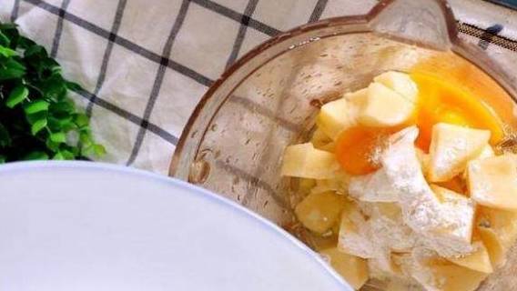 制作方法2:把切成小块儿的苹果放入辅食机里面