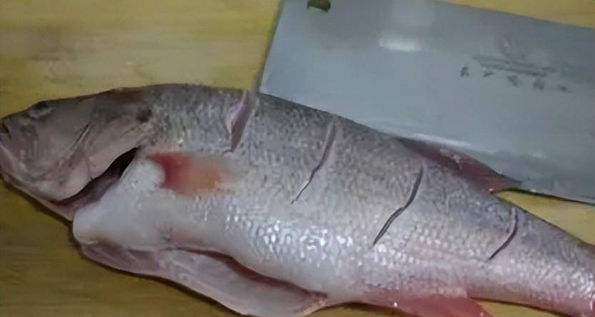 1、首先将买来的鲈鱼处理干净,去掉肚中的内脏,清洗几遍,然后划花刀。