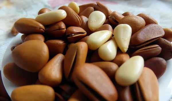 3、将松仁放入锅中炒制金黄,炒出松仁儿的香味,呈金黄即可,放入碗中晾干。