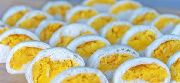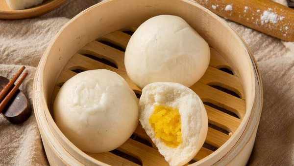 7、冷水上锅,大火烧开水开后转中火蒸15分钟,蒸好以后关火并等待3分钟再揭盖,香儿浓郁的奶黄包就做好啦;奶黄包要趁热吃哦,口感会更加的松软香甜,一次吃不完的放入保鲜袋,可在冰箱冷冻1-2周,早上需要吃的时候拿出来蒸一下就可以了。