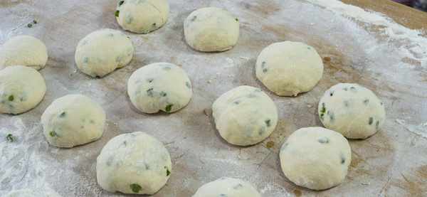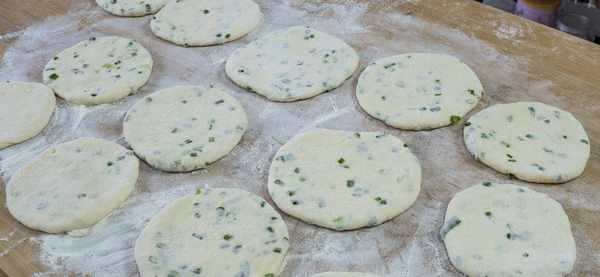 全部做好后用手掌压成小饼,面饼的生胚就做好了;