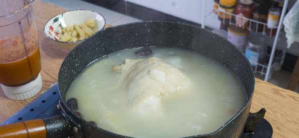 7、大火煮开后转小火炖1个小时,小火慢炖味道更鲜,鸡肉也不会烂;