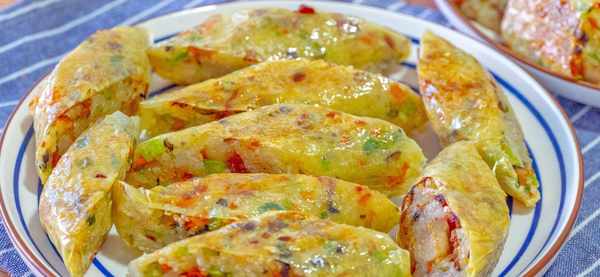 16、吃的时候切成小块儿,大小自己喜欢就好。最后再用油煎一下, 吃起来会更香。