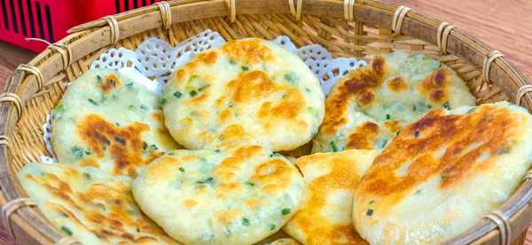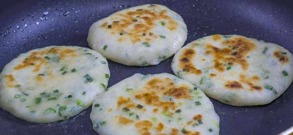 15、最后还有几张大一点的葱花饼,同样的煎到两面金黄焦脆后就可以出锅了,这个大的葱花饼和小的相比,层次更丰富,吃起来外面是焦香酥脆的,但里面是柔软劲道的;