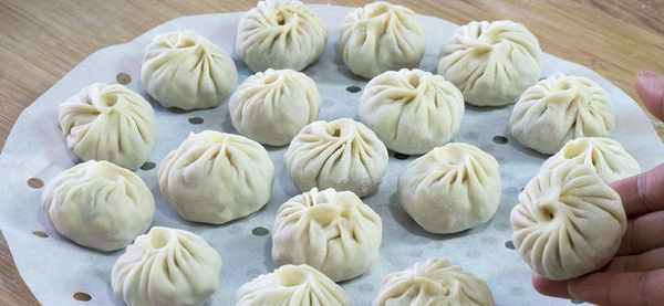 10、我们先来蒸小包子,放入蒸锅中后冷水大锅,大火12分钟就能熟透;