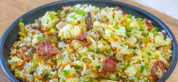 12、翻拌均匀后就可以盛出来了,这个糯米炒饭真的太香了,看着就特别的诱人。