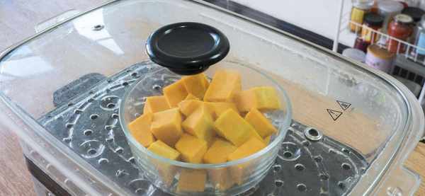2、这时候我们将南瓜放蒸锅里蒸20分钟;