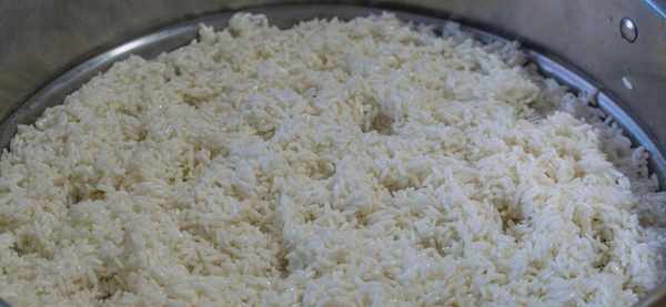 9、糯米饭蒸熟后先用筷子挑散,然后倒入碗里。