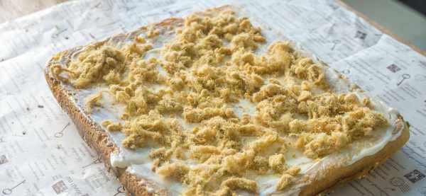 8、等到完全晾凉定型后取下油纸切块儿,两边再刷上沙拉酱、蘸满肉松,大功告成。