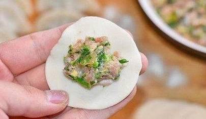 4、饺子馅做好之后就要开始包饺子了,我是买的现成的饺子皮,自己真的做不来。饺子的包法多种多样,你可以按照自己的喜好来。
