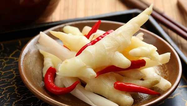 四川泡菜中,少不了泡姜。泡姜即可烹饪调味,又可以单独做一盘开胃冷菜。四川有一道漂汤鱼儿,都是小杂鲜鱼,只放泡姜,用猪肥膘油抹锅,入姜,入鱼,入年糕。
