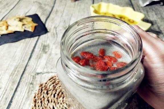 料理机中加入清水,枸杞,无花果,黑芝麻煮开后磨至细腻。