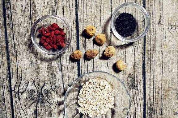 大家好~我是肉肉厨!今天和大家分享的是一道营养的快手早餐。这道早餐不仅适合那些白领上班一族,同时还适合赶着上学的小孩子吃。做法简单,营养丰富。这道早餐就是--黑芝麻燕麦片。燕麦片属低热食品,食后有饱腹感,同时常吃燕麦有助于消化,预防骨骼疏松的效用。黑芝麻有健胃,补肝的效用。加上枸杞,枸杞有保护视力的作用。吃了这些这么有营养的食材,早上的营养就差不过够了!
