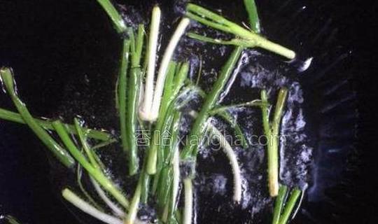 5.小葱颜色变干枯后捞出,葱油留在锅中