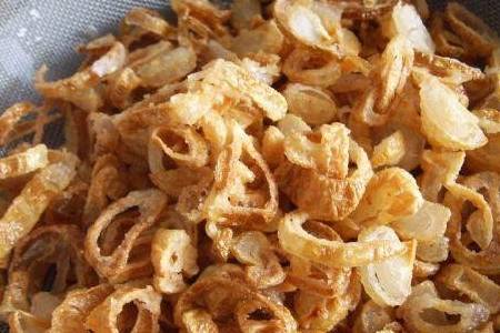 其实这个洋葱酥不是单独的菜品,而是做很多台湾及东南亚美食的一种重要的调料。在制作正宗台湾卤肉饭、马来西亚肉骨茶里不可缺少的提味调料,在我国福建很多传统菜肴里也是必不可少的钓味宝贝呢!不要小看这小小洋葱酥,在泡饭、面食、菜汤里加一点点,味道马上好的不得了呢!迫不及待的看看它的做法吧!呵呵!~~~