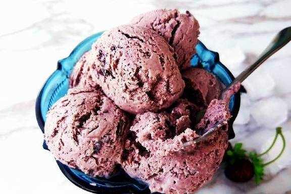 没有冰淇淋机/面包机配套的冰淇淋桶,做法看这里:将提前冷藏了一天的淡奶油倒入打蛋盆中,加入细砂糖,用电动打蛋器将淡奶油打发到缓缓流动的状态,再和桑葚糊拌匀,倒入保鲜盒密封冷冻即可。中途无需搅拌,成品也没有冰渣,口感醇厚好吃。