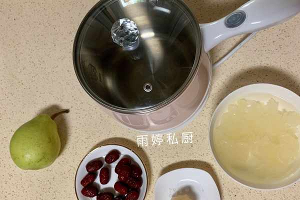 雪梨1個、銀耳8克、紅棗數個、老冰糖5克