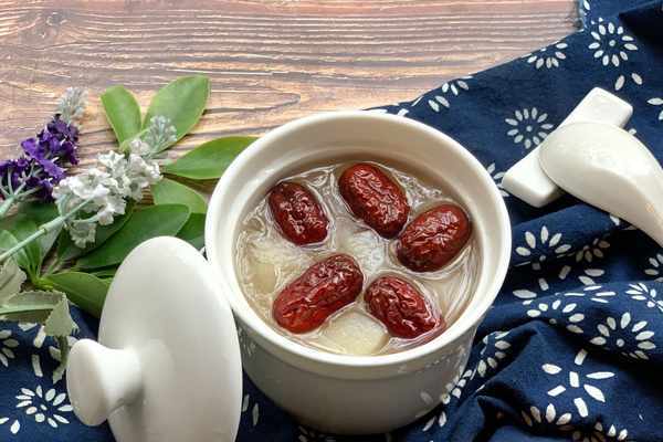 4、當銀耳燉煮至軟糯出膠後,加入老冰糖和紅棗繼續燉煮10分鐘左右。