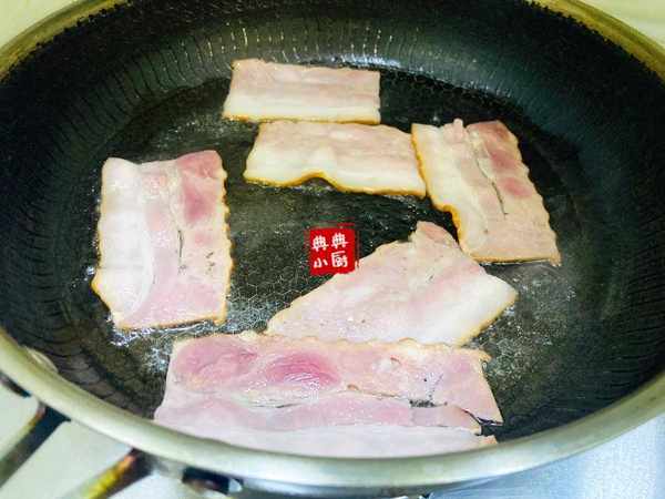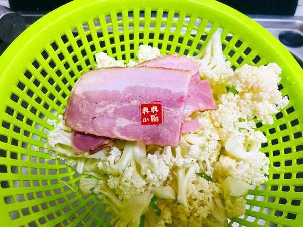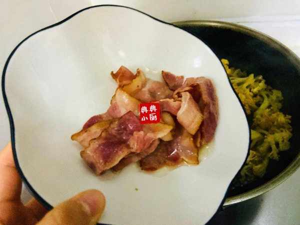 所以赶上下雨天的时候就只能清冰箱里的一些库存了。正好还有一些培根,这是孩子最喜欢吃的,平时早餐的时候我会用来做三明治的夹心,或者煎一下放面条上面。这次准备放花菜里面,正好两种食材都是她喜欢吃的。