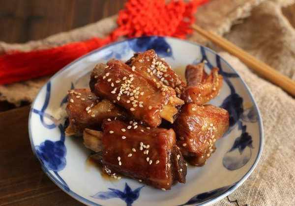 准备食材:肋排700克、生姜3片、大葱1段、料酒1勺、生抽2勺、香醋3勺、白糖4勺、清水5勺、热水适量、食盐适量、熟芝麻适量