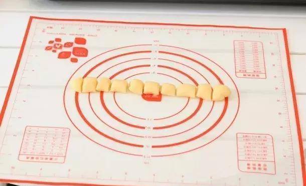 3.取一小块面团搓成长条状,然后切成一个个小颗粒。