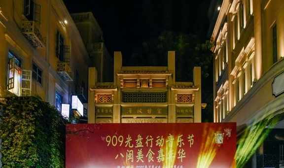 在中段的牌坊處,被熱鬧的音樂所吸引,原來這兩日正在舉行"909光碟行動音樂節",宣導節約糧食是當今的重點。發覺在牌坊後側,就是巴黎春天百貨的後方,新開了一處"廈門八閩美食特色廣場",人流攢動,跟著來去看看。
