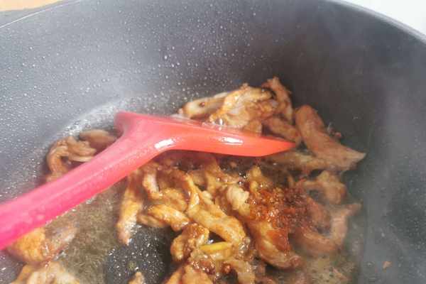 7.放入猪肉翻炒變色