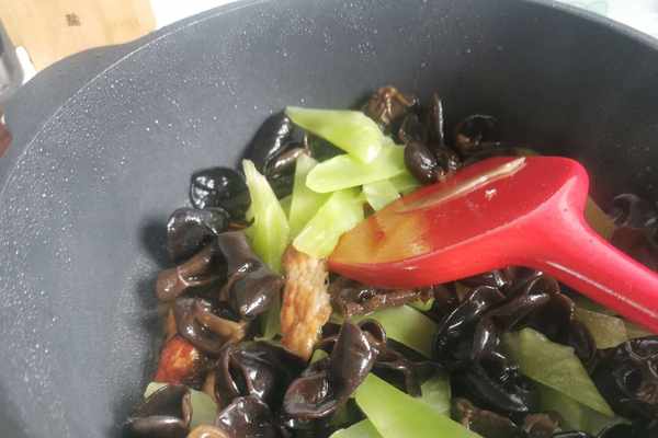 9.加入木耳萵筍炒熟