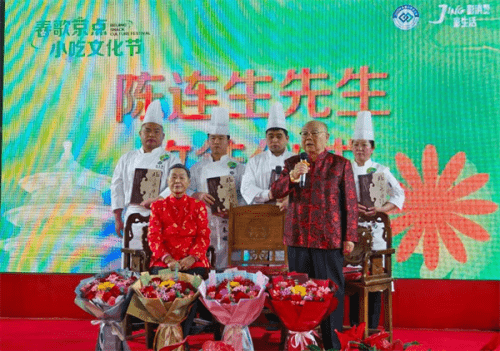 年逾八旬的陈连生被尊称为“京城小吃第一人”,从二十世纪六十年代组建家喻户晓的“南来顺小吃店”,到2002年执掌名震京华的“吐鲁番餐厅”,他对北京小吃的继承、发展、传播倾注了大量情感与责任。在长期实践中,对中国烹饪和餐饮事业逐渐由感性认识转化为理性认识,并升华到饮食文化的高度。多年来共出版了《京城琐谈——北京小吃》、《南来顺清真菜点集锦》、《宣南饮食文化》、《北京小吃》、《食之雅韵》等十余册书籍,是公认的小吃专家,在北京饮食业乃至全国餐饮业都有较高的知名度和威望。 陈连生先生出生于1936年,从12岁到珠市口一家清真餐馆学厨入行,到后来长时间经营南来顺饭庄、吐鲁番餐厅,陈连生一直与北京小吃结缘,至今已有70余年。他整理出版了《京城琐谈——北京小吃》等十余种书籍,是业内公认的小吃专家、“京城小吃第一人”。老北京小吃文化的传承发展,离不开一代又一代的匠人匠心的传承。今天在活动现场,北京小吃专家陈连生又一次正式收徒。据了解,4位新收徒弟来自于翔达南来顺饭庄,南来顺多年来坚守“老味道”传承,“原汁原味”的产品风格;丰富了北京多元化餐饮风格,为北京菜的形成奠定了基础;并形成独特的“老北京小吃文化”风格。陈连生老先生曾任南来顺企业的负责人,为企业品牌发展与传承培养了多位优秀人才,为京味小吃文化传承提供技术支持和人才保障做出了重要的贡献。