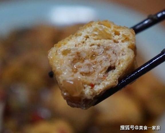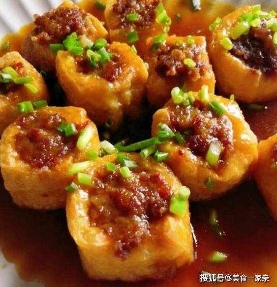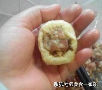 这道菜就是酿豆腐泡,主要的食材就是豆腐泡和猪肉了,相信大家也都知道为什么现在只有大户人家才吃得起这道菜了吧,因为里面的食材是猪肉,现在猪肉价格到了30多块钱1斤,不是有钱人,还真吃不起。