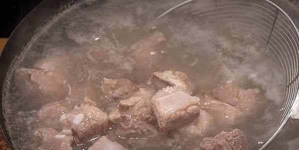 起锅烧水,冷水下入下入排骨,开大火把水烧开,有葱姜的加一点进去,去腥效果也非常棒。