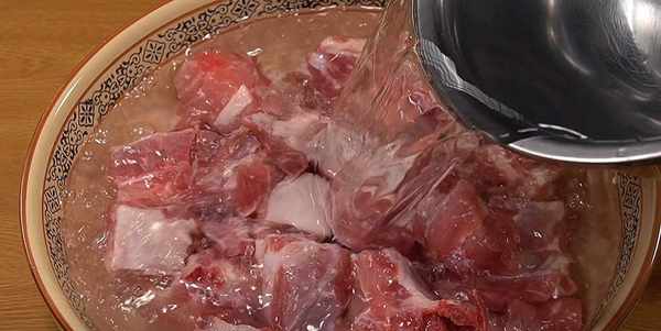 排骨不管做成什么菜品,都不要直接焯水。不是说焯水不对,而是不要直接焯水,下锅前做多1步保证成品最后不腥不柴。买回来的排骨先不用冲洗,直接放入盆中,加入没过食材的清水,然后加入一大勺的盐,淡盐水可以软化肉质,让它吃着不柴。让它浸泡20分钟以上。