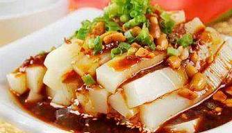 食材预备:粉1汤勺,凉开水1汤勺,煮开的水5汤勺,糖,陈醋,酱油,蒜蓉,葱花,油辣子。步骤:1.一勺子粉加一勺子凉开水开匀,加到5勺子煮开的水里疾速搅匀,2.小火煮到冒泡就好了,稍凉就将它倒进饭盒里放冰箱冷藏到冻结。3.调料加点糖、陈醋、酱油、蒜蓉、葱花,最后少不了的当然是要加上文文秘制的油辣子那才能算叫四川凉粉了。凉面: