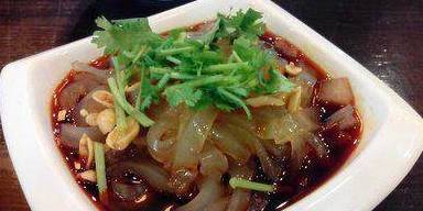 食材预备:面粉、红薯淀粉、醋、生抽、蚝油、糖、蒜泥、盐、西红柿、韭菜、芝麻酱、绿豆芽。步骤:1.将面粉,红薯淀粉和过量盐放在盆中,加入清水,用手搅拌成面糊。不断搅,一边渐渐的加入过量的水,这个过程大约持续7、8分种的样子,最后得到非常容易活动的细腻的面糊。2.放入盘中,最好找两个盘子,可以交换着来,不沾,不需求抹油。3.蒸锅放足量的水,烧开,放入装了面糊的盘,盖盖蒸2分钟。看到凉皮鼓起大泡,就是熟了。蒸好的凉皮,连盘子过一下凉水,记得带手套操作,避免烫伤手。4.凉皮一定要蒸熟,才会劲道柔软。蒸好后很薄很透,也很劲道。做好的凉皮,切成条、西红柿切成小块,韭菜切段,开水绰烫半分钟至熟。5.芝麻酱一点点的加入凉开水,搅拌成比较顺滑的形状,加入盐,醋,生抽,蚝油,糖,蒜泥等调料,拌匀就成了料汁。6.凉皮放入碗内,放上配菜,浇上麻汁和红油,拌匀就好了。烹饪技巧:其实拌菜有黄瓜和绿豆芽就最好了,黄瓜丝,绿豆芽,韭菜,麻汁可称作是凉皮的标配。小编提示:可以加入一点碾碎的碎花生,冬季不合适吃太多辣椒的,请过量。凉粉: