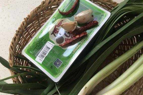 材料:鸭血1盒,大蒜叶5根、大蒜头2瓣、干辣椒5个、生姜2片、盐六克、料酒二汤匙、生抽1汤匙、老干妈半汤匙、糖10克、白醋少许