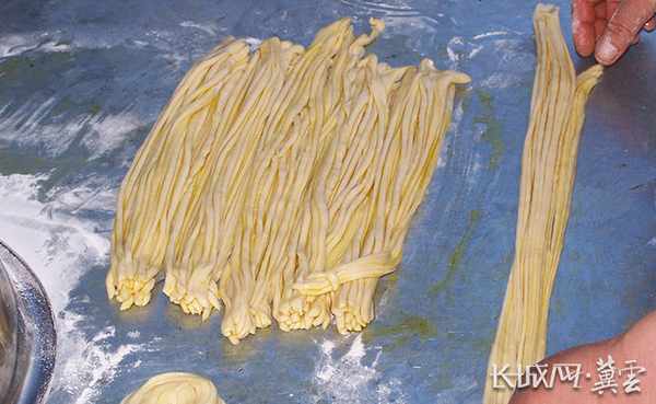 用白面和麻油做成拉面。