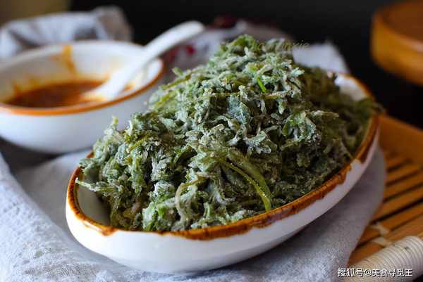 2、直到每片叶子都沾满面粉之后,蒸笼提前备好铺好笼布,把茵陈倒进去,然后盖上盖子,大火蒸3-5分钟即可,关火后再焖2分钟即可出锅。可以再准备少许的蒜蓉和辣椒油调个料汁,和粉蒸茵陈一起食用,十分美味。