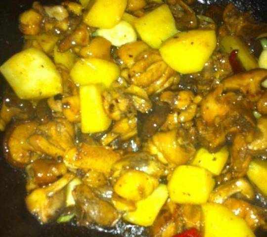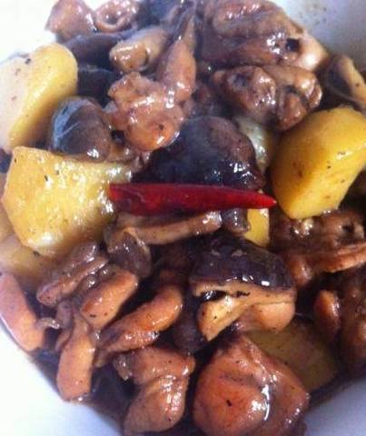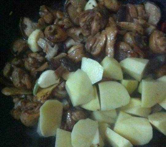 土豆去皮切滚刀块备用,其实不用土豆也可以,原装的黄焖鸡就没有土豆的,只用香菇就可以了!