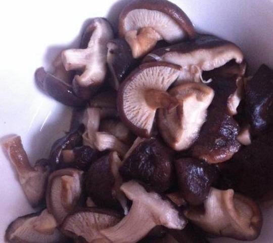香菇,洗干净后,开水煮三分钟,捞出来过凉水,沥干水分备用