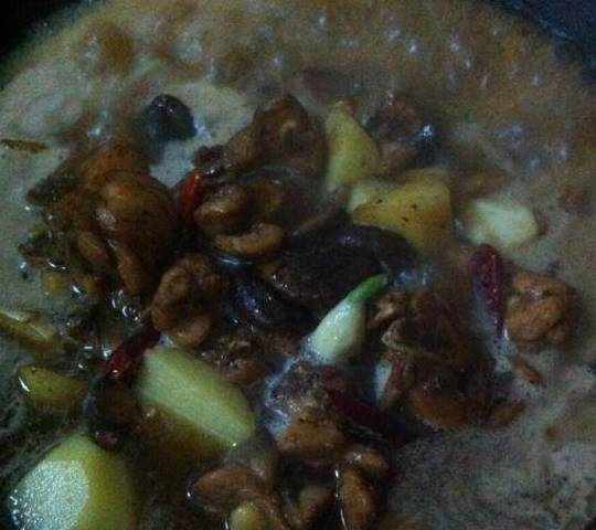 糖化后,即可把鸡肉放进去搅拌