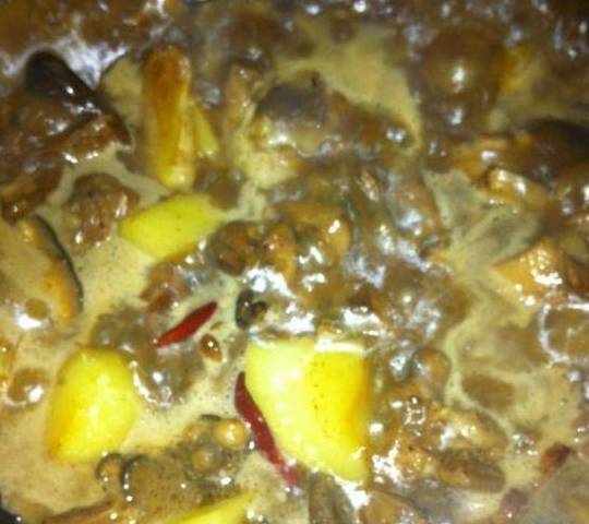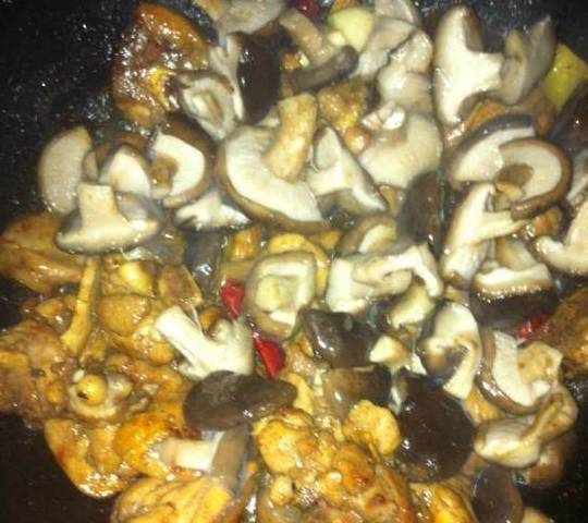 然后加蘑菇,翻炒一会儿