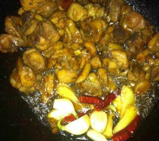 翻炒均匀后,加白开水,末过鸡肉就可以了