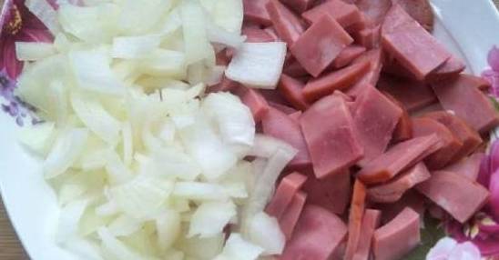 首先当然要把食材准备好,将土豆去皮之后切成小丁,再将洋葱切小块,香肠切小片,放在一旁备着,这样用起来就很方便啦!