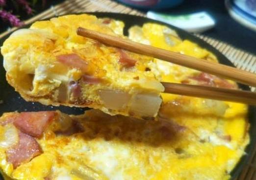 别着急,还要加锅盖小火烘,待蛋液凝固之后将烘蛋翻面,小火烘2分钟左右就可以盛出啦,注意观察哟,别煎糊啦。
