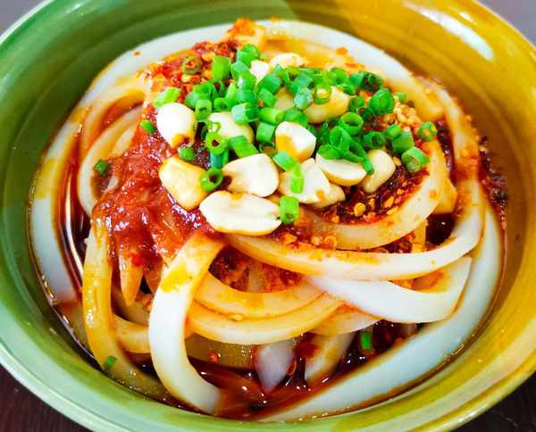 红油米卷跟伤心凉粉有异曲同工之妙,特色红薯混合米面做成,秘制的酱汁、超香的红油,连汤都喝光光,只有安岳才有。