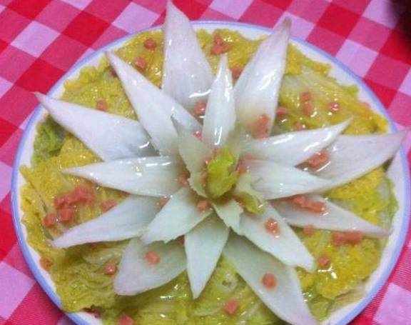 这道菜的亮点就是娃娃菜的刀工!