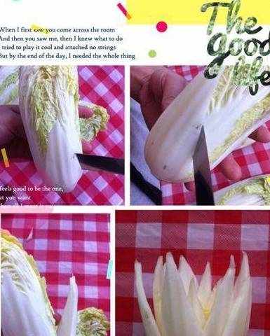 剩下的一颗娃娃菜需改刀花瓣型,看下图