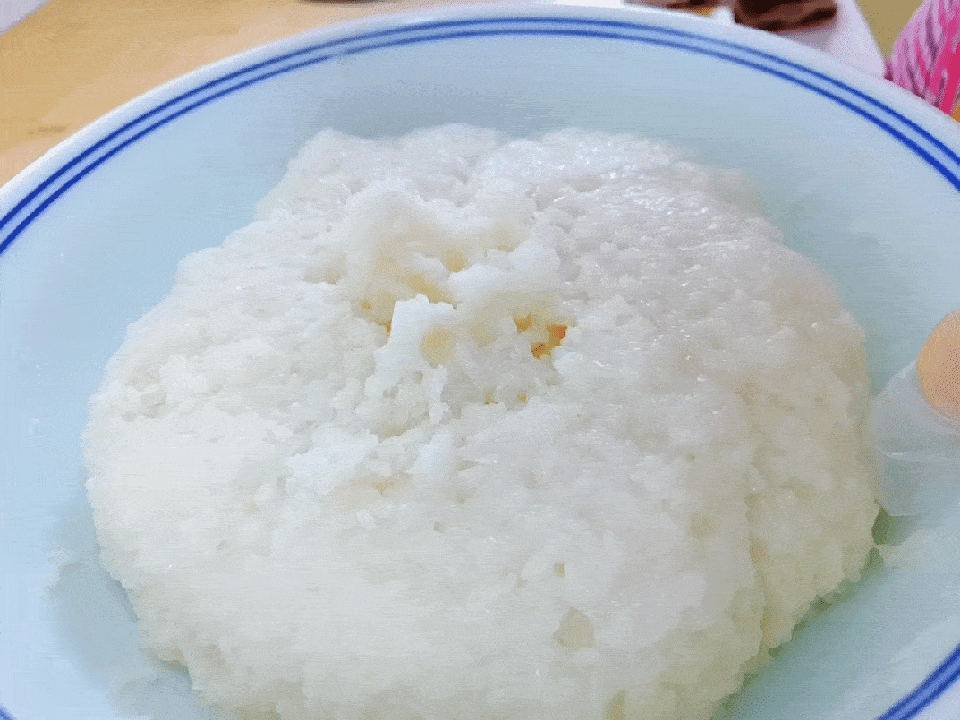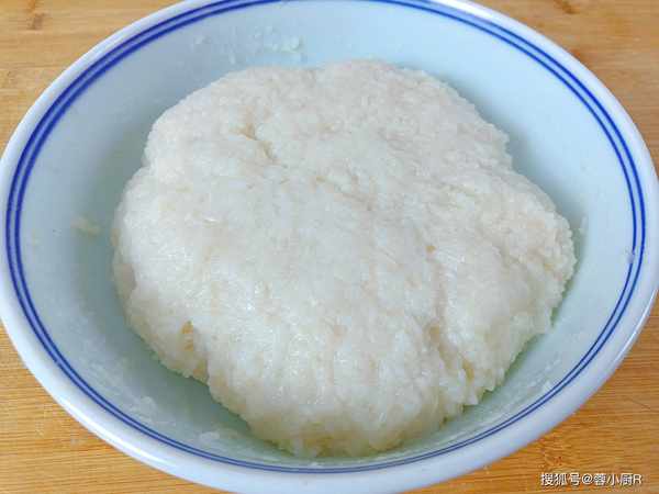 2、擀面杖也刷上一层油,接着用擀面杖把糯米饭捣烂,有点像做糍粑一样。这个步骤需要一点力气和耐心。糯米饭完全捣烂后比较粘稠,黏性也会更强。